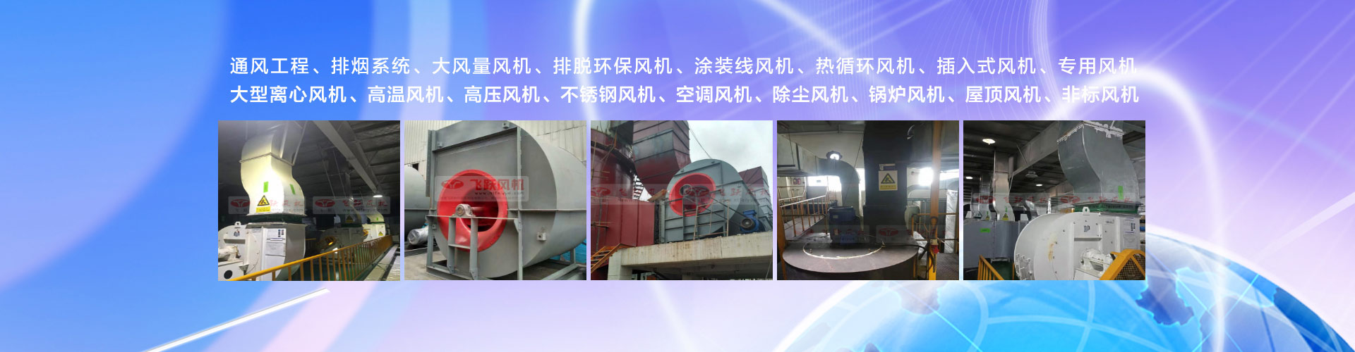 主要產(chǎn)品有:高溫風(fēng)機(jī)、高壓風(fēng)機(jī)、熱循環(huán)風(fēng)機(jī)、鍋爐風(fēng)機(jī)、除塵風(fēng)機(jī)、不銹鋼風(fēng)機(jī)、輸送風(fēng)機(jī)、屋頂風(fēng)機(jī)、紡織風(fēng)機(jī)、空調(diào)風(fēng)機(jī)、專用風(fēng)機(jī),非標(biāo)風(fēng)機(jī)等品種齊全!熬仂`”系列風(fēng)機(jī)產(chǎn)品,以優(yōu)良的性能,卓越的品質(zhì)獲得了廣大用戶的廣泛好評(píng)。